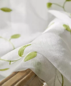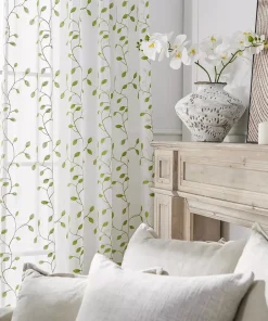 Transform your living room with the subtle elegance of Embroidered Leaves Semi Sheer Voile Window Curtains, blending practicality with refined aesthetics for a welcoming home environment.