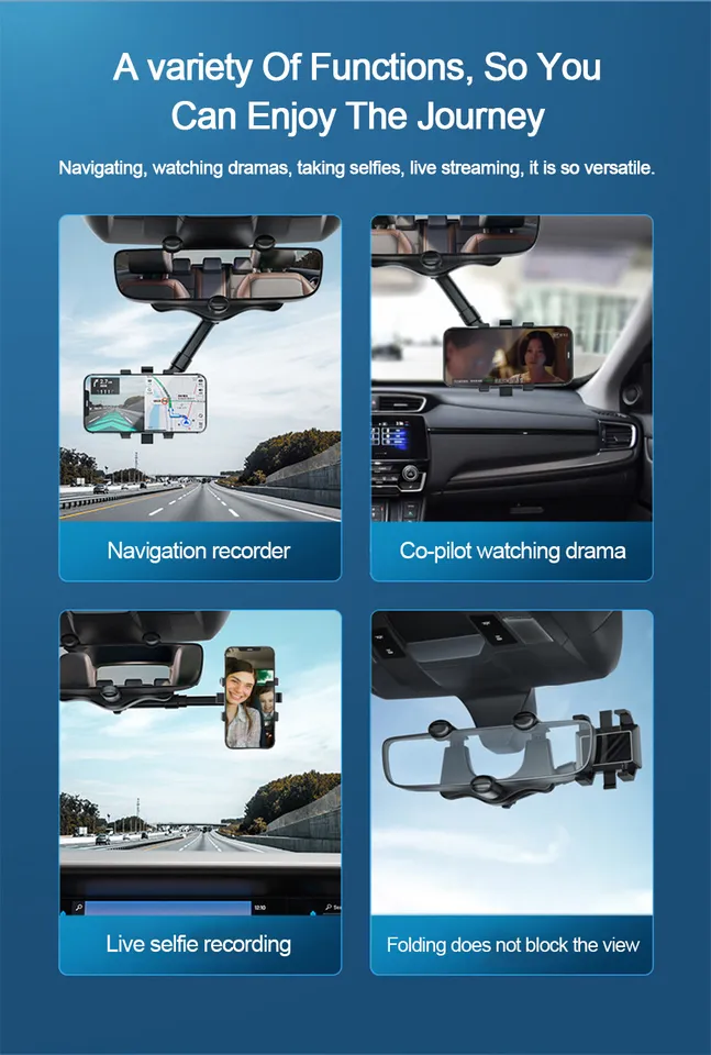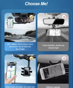 Overall, the 360° Car Rear View Mirror Mount Holder Stand combines versatility, convenience, and safety, making it an essential accessory for smartphone users who frequently travel by car.