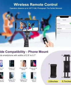 Universal Phone Holder: The tripod features a universal phone holder with adjustable width, ensuring a secure fit for various smartphone models. It allows users to rotate their phones horizontally or vertically to capture landscape or portrait shots.