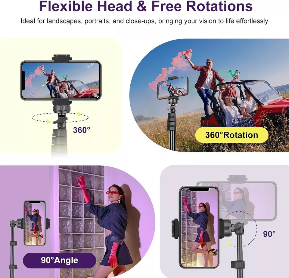 Versatile Applications: Whether used for vlogging, live streaming, video calls, or capturing special moments, this tripod and selfie stick combo enhances the user’s ability to create high-quality content with ease.