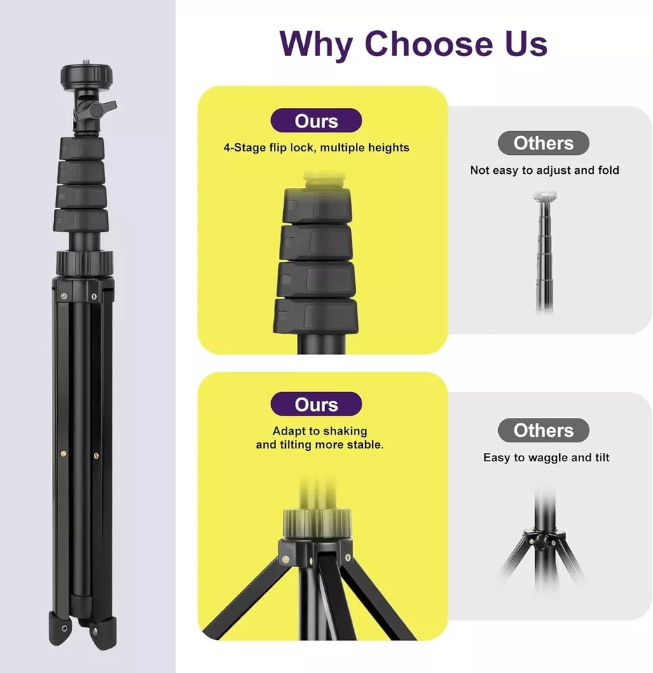 Material and Construction: Made from lightweight and durable materials, this tripod is designed to be stable yet portable, suitable for indoor and outdoor use.
