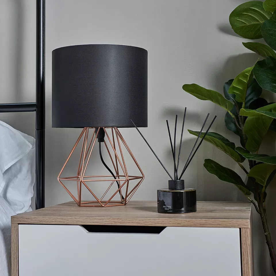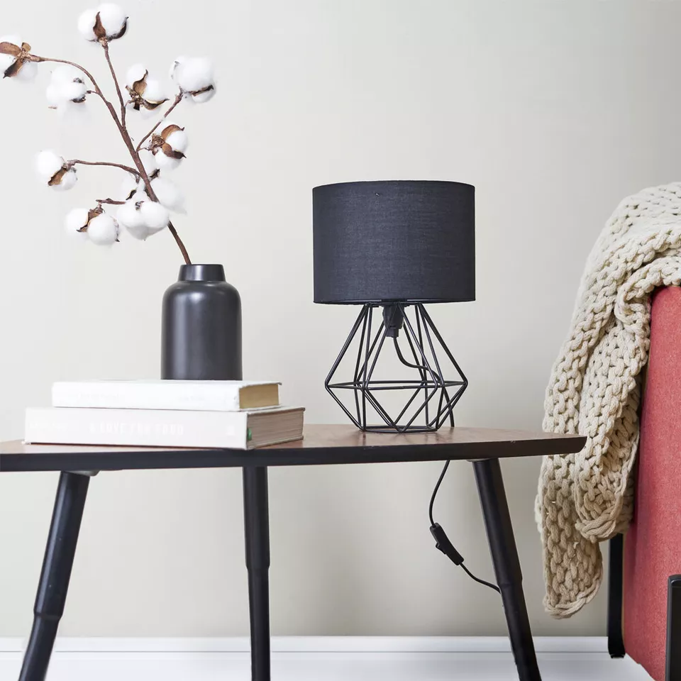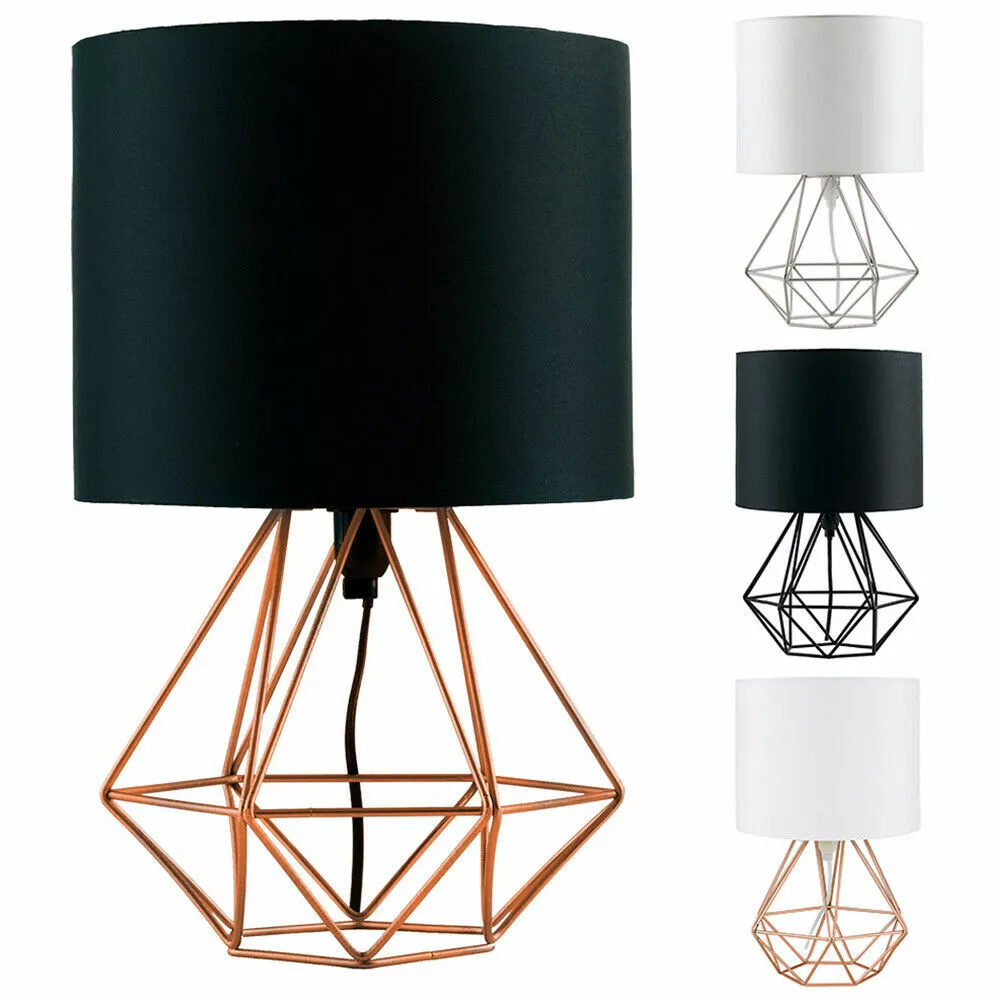 Bedside Table Lamp Industrial Metal Living Room Desk Light Geometric LED Bulb