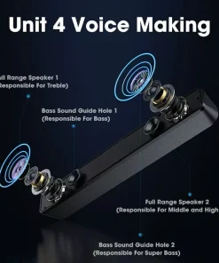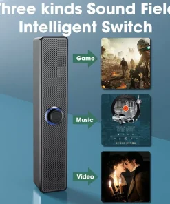 Sound Quality: The speaker delivers stereo sound with emphasis on bass, providing a balanced audio experience suitable for music, movies, and gaming. Depending on the model, it may include features like passive radiators or a subwoofer to enhance bass response for richer audio output.