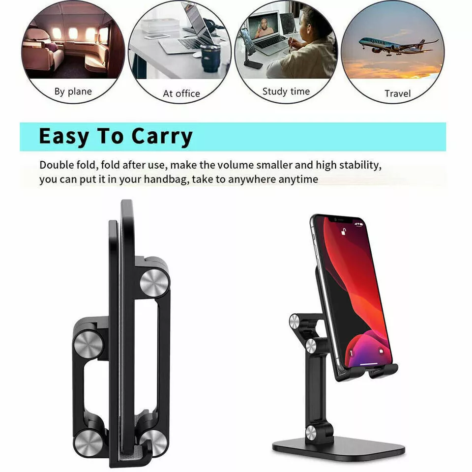 Overall, the Foldable Cell Phone and Tablet Desktop Stand Desk Holder Mount Cradle combines versatility, durability, and ease of use, making it an essential accessory for smartphone and tablet users looking to enhance their digital experience in various settings.