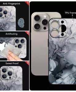Material and Design: Crafted from high-quality TPU and PC materials, this case offers robust protection while maintaining a stylish marble design. It is designed to fit each iPhone model precisely, ensuring a snug and secure fit.