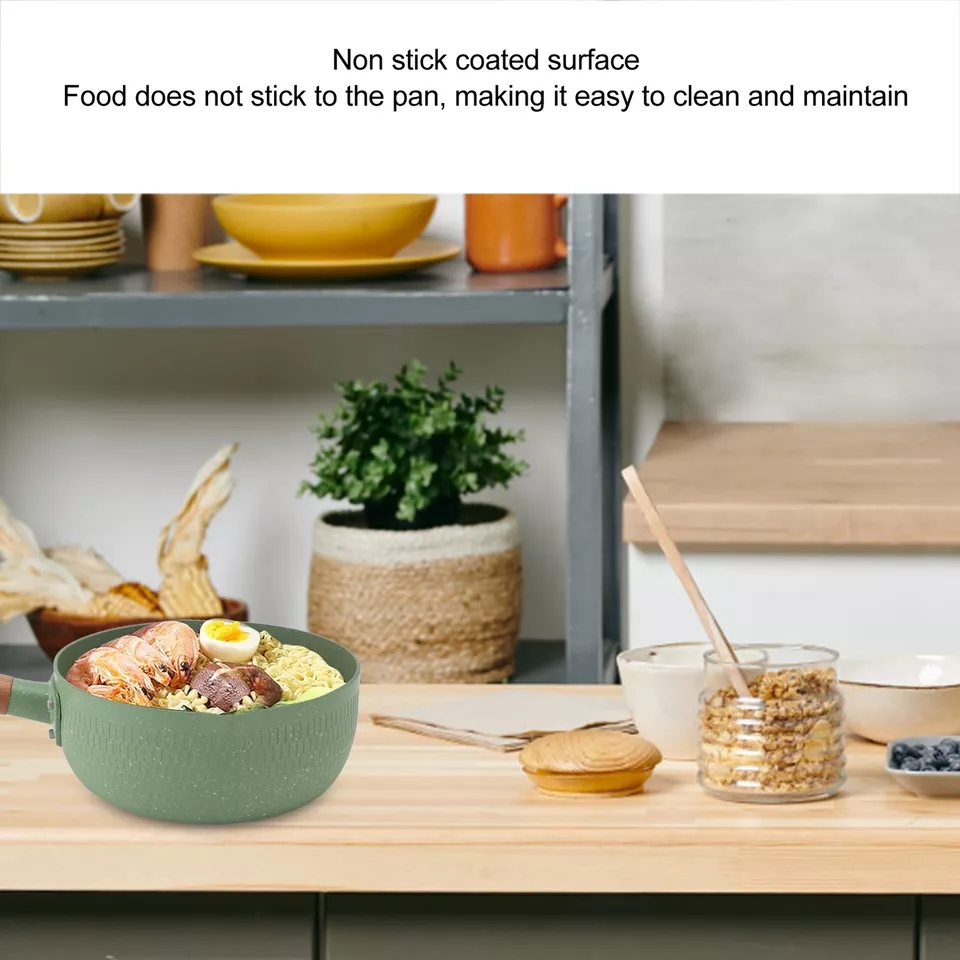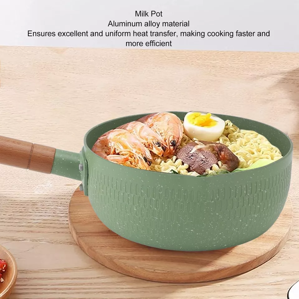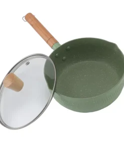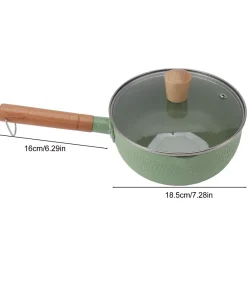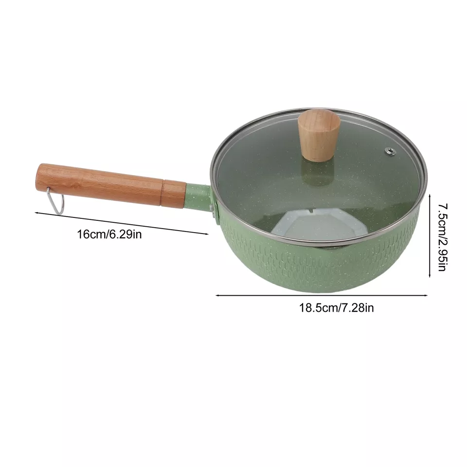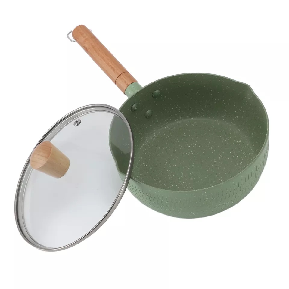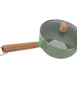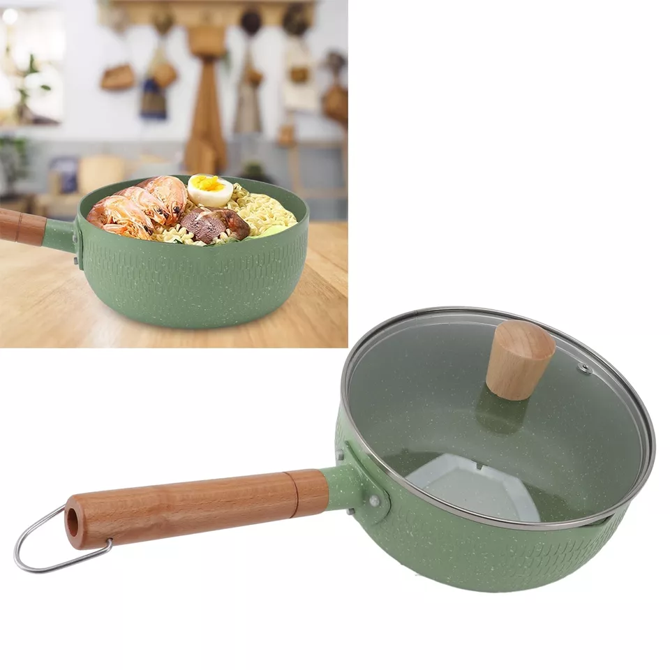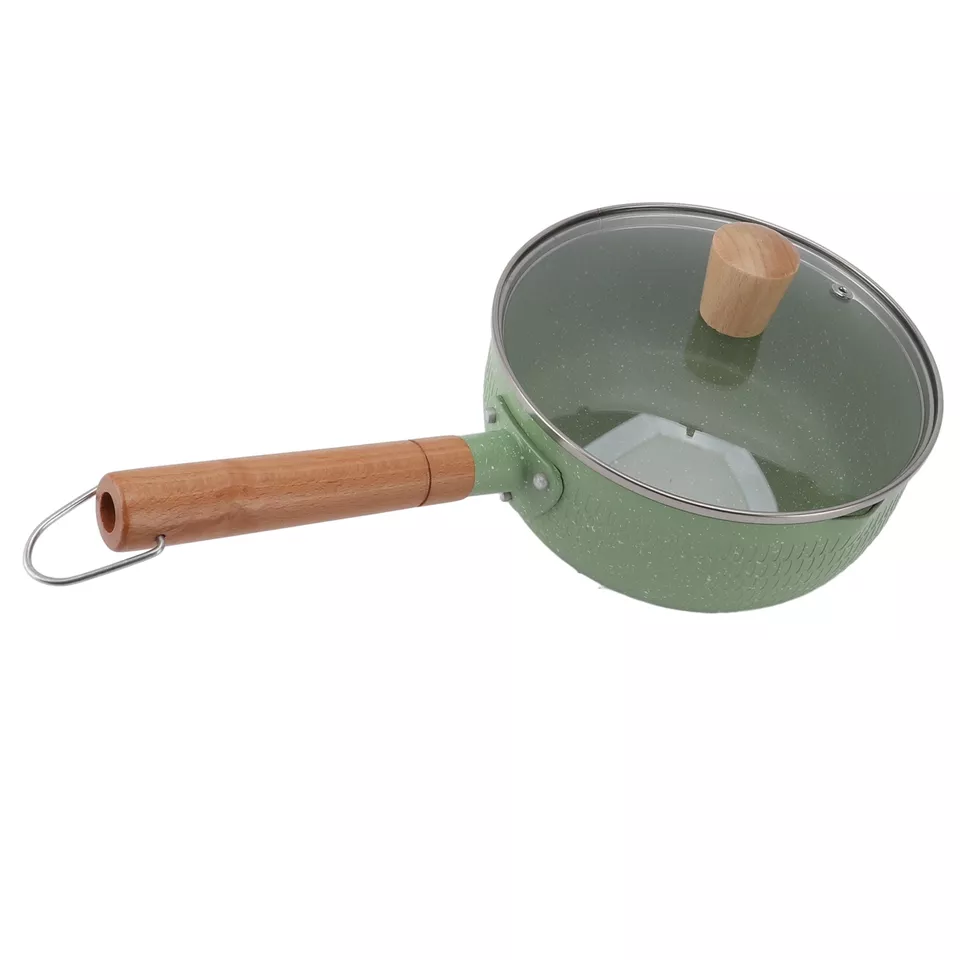 Wooden Handle Milk Pot Flat Bottomed Noodle Sauce Pan Green With Lid